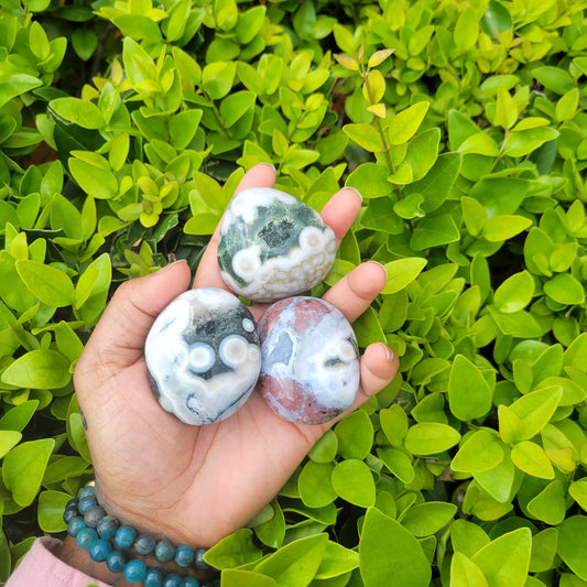 Ocean Jasper Palm stone- Helps relieve stress and tension | Release of negative emotions and thought patterns | Enhances personal power