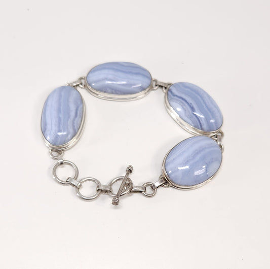 Sterling Silver Blue Lace Agate Bracelet- Calming | Clarity | Communication